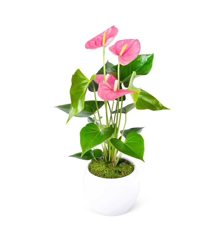 Ürünün boyutu 45-50 cm aralığında, saksı çapı ise 10 cm’dir. Anthurium pembe, zarif ve şık görünümüyle iç mekanlara sofistike bir dokunuş katan tropikal bir bitkidir. Parlak yaprakları ve uzun ömürlü çiçekleriyle dikkat çeker. Pembe renkleri, saflığı, huzuru ve zarafeti simgeler, bu da onu özel anlar ve hediye seçenekleri için ideal hale getirir. Pembe anthurium, özellikle sevgi, dostluk ve huzuru temsil eder. Doğal zarafeti ve sakinleştirici rengi, yaşam alanlarında pozitif bir atmosfer yaratır. Aynı zamanda sevgi dolu bir hediye olarak da sıklıkla tercih edilir. Anthurium pembe, sıcak ve nemli ortamları sever. Doğrudan güneş ışığından kaçınılmalı ve düzenli sulama yapılmalı, ancak fazla sulamaktan kaçınılmalıdır. Yüksek nemi sevdiği için, yapraklarının düzenli olarak temizlenmesi veya etrafına su püskürtülmesi faydalı olabilir. Bu bitki, doğru bakım ile uzun süre sağlıklı ve canlı kalır, mekâna zarif bir hava katar.