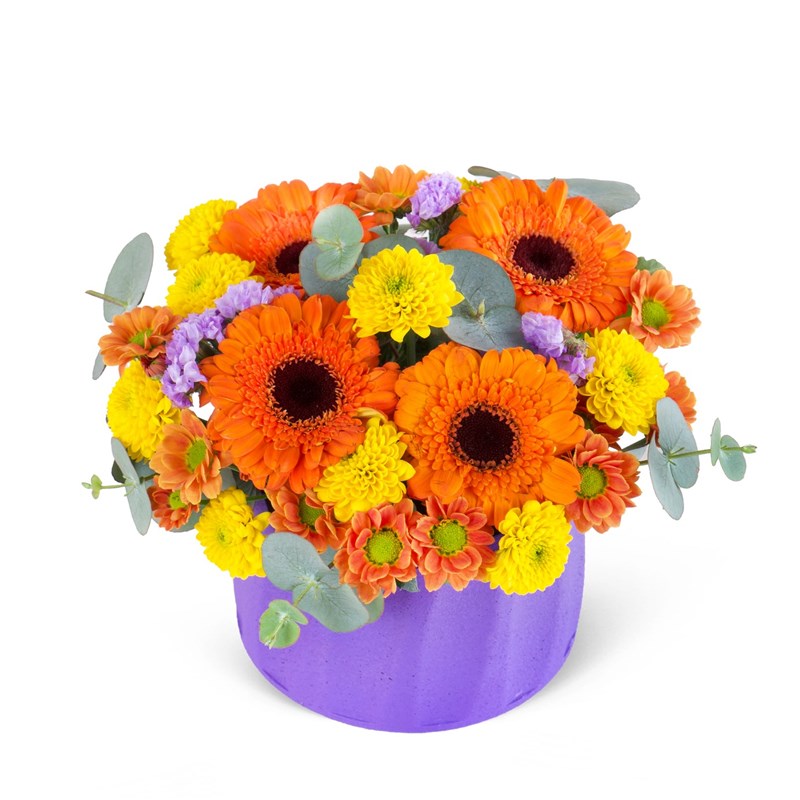 Ürünün boyutu 12-18 cm aralığındadır. Canlı turuncu gerbera ve biçme çiçekleri, sarı krizantem ve mor statisin zarif birleşimiyle ortaya çıkan bu muazzam aranjman, renklerin enerjisini en güzel şekilde yansıtıyor. Her bir çiçek, enerjik ve pozitif bir atmosfer yaratmak için özenle seçildi. Turuncunun sıcaklığı, sarının neşesi ve morun zarafetiyle, iç mekanlara ya da özel günlere mükemmel bir dokunuş yapıyor. Baharın taptaze havasını evinize taşıyan, göz alıcı bu aranjman, hem gözlere hem de ruhunuza hitap edecek! Modern ve şık tasarımıyla Aurinko Galata Turuncu, sevdiklerinize renkli ve anlamlı bir mutluluk armağan etmek için en güzel seçeneklerden biri! Şimdi sipariş verin ve bu özel çiçekleri keşfedin.