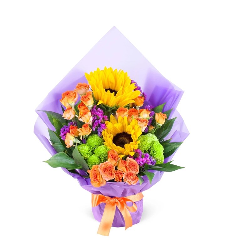 İstanbul Çiçekleri tasarım ekibi tarafından özenle hazırlanmış olan bu aranjman, hem göz alıcı hem de anlam yüklü bir hediyedir. Yaklaşık 30-35 cm boyutundaki bu şık aranjman, ışıltılı sarısıyla dikkat çeken ayçiçekleri halk arasında bilinen adıyla günebakan, pozitifliği ve içtenliği simgelerken, yanında yer alan canlı tonlardaki turuncu çardak güller sıcak ve samimi bir hava katıyor. Canlı ambalajı ve zarif kurdelesiyle tamamlanan bu aranjman, ister özel günlerde ister küçük ama anlamlı bir sürpriz yapmak istediğinizde mükemmel bir tercih olur. Tazeliğiyle yaşam alanlarına neşe katan bu aranjman, hem göze hem ruha hitap eden doğal ve şık bir hediye alternatifi sunar.
