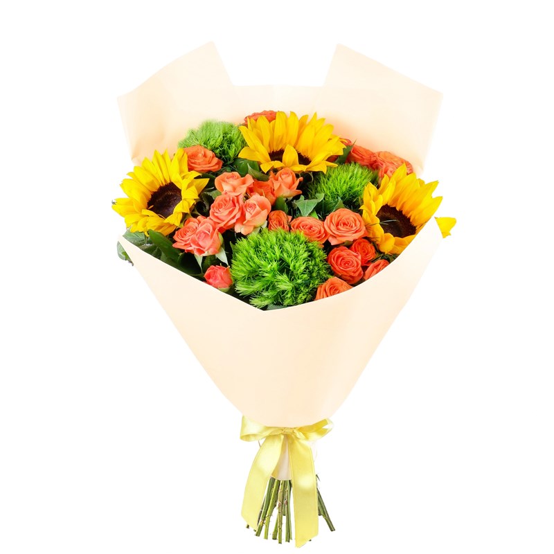 Ayçiçeği ve Turuncu Çardak Gül Buketi - Bahariye Çardak, enerjik ve sıcak renkleriyle dikkat çeken şık bir çiçek aranjmanıdır. Parlak ayçiçekleri ile turuncu çardak güllerinin uyumu, bukete canlı ve göz alıcı bir görünüm kazandırır. Ayçiçeği mutluluk ve pozitif enerjiyi simgelerken, turuncu güller heyecan, sıcaklık ve içten duyguları temsil eder. Bu nedenle sevdiklerinize neşeli ve anlamlı bir sürpriz yapmak için harika bir tercih olabilir. İstanbul Çiçekleri tarafından özenle hazırlanır ve aynı gün teslimat avantajıyla sevdiklerinize hızlıca ulaştırılır.