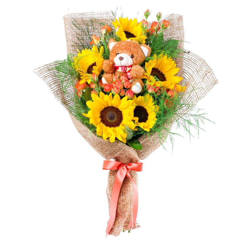 Ürünün boyutu 40-45 cm aralığındadır. Sevdiklerinize sıcacık bir mutluluk hediye etmek istiyorsanız, Ayıcıklı Ayçiçeği Buketi tam da aradığınız armağan! Güneşi çağrıştıran ayçiçeklerinin enerjisi, sevimli bir pelüş ayıcık ile buluşarak hem göz alıcı hem de duygusal bir hediye seçeneği sunuyor. Bu özel buket, doğanın en güzel renklerini ve neşesini temsil eden ayçiçekleriyle, yumuşacık ayıcığın sevgi dolu dokusunu bir araya getiriyor. İster doğum günlerinde, ister özel kutlamalarda ya da sadece sevdiklerinizi mutlu etmek istediğiniz bir anda bu buketle onların gününü aydınlatabilirsiniz.