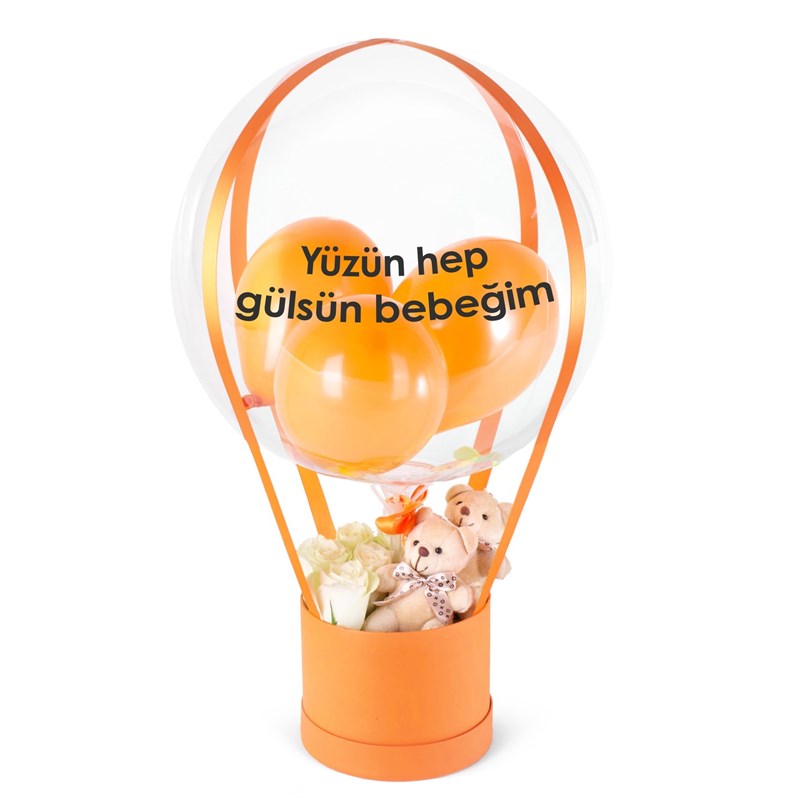 Özel günleri unutulmaz kılmak için tasarlanmış kişiye özel balon kutularımızla sevdiklerinize anlam dolu bir sürpriz yapın. Balon üzerine dilediğiniz mesaj yazılır; tamamen sizin isteğinize göre hazırlanır. Balon, kutu içerisinde yer alan beyaz güller ve sevimli peluş ayıcıkla tamamlanarak duygusal bir hediye haline geliyor. Ürün Boyutu: Kutu Ölçüleri: 15 x 15 cm Yükseklik: 60 cm