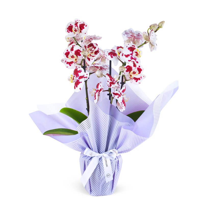 Benekli Mor Orkide Aranjmanı Multi Midi Çift Dallı, zarafeti ve şıklığı bir arada sunan özel bir tasarımdır. Canlı mor tonları ve benekli yaprak detaylarıyla dikkat çeken bu orkide, bulunduğu her ortama estetik bir hava katar. Çift dallı yapısı sayesinde daha dolgun ve gösterişli bir görünüm sunarak hediye alternatifleri arasında öne çıkar. İstanbul Çiçekleri tarafından özenle hazırlanmış bu özel aranjman; Sevgililer Günü, doğum günü, yıldönümü ve özel günlerde sevdiklerinize unutulmaz bir hediye vermenizi sağlar. Taze ve kaliteli çiçeklerle hazırlanan tasarım, uzun süre canlılığını koruyarak sevdiklerinize günlerce mutluluk taşır.