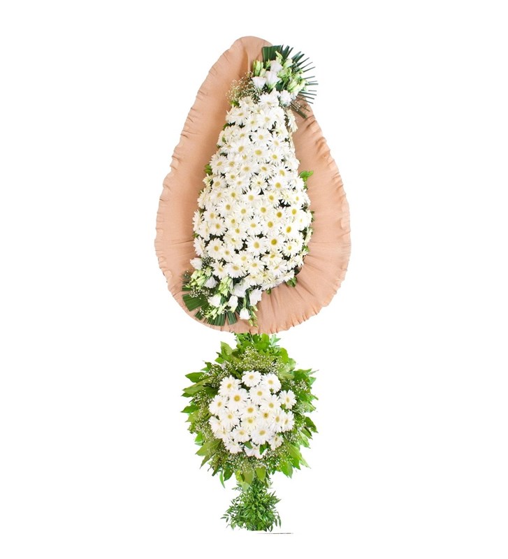 Beyaz Gerbera Kutlama Çelengi Çift Kat - 1
