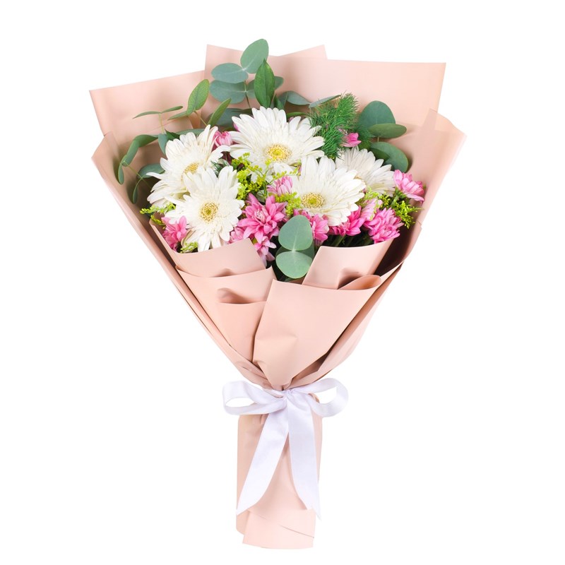 Zarafetiyle büyüleyen Beyaz Gerberalar ve saflığı temsil eden pembe papatyalar, aynı bukette buluşarak huzuru, sadeliği ve masumiyeti anlatıyor. Doğallığıyla göz kamaştıran bu özel buket, hem şık hem de samimi bir hediye seçeneği olarak sevdiklerinize duygularınızı en saf haliyle ifade etmenize yardımcı olur.