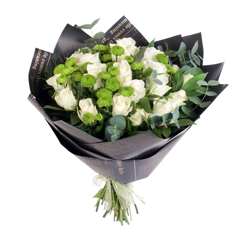 Ürünün boyutu 30-35 cm aralığındadır. Gümbet Buketi, zarafetin ve saflığın en güzel örneğini sunuyor. İçinde yer alan beyaz güller, masumiyetin, saflığın ve saf sevginin sembolüdür. Beyaz gül, aynı zamanda huzur, sadakat ve saygıyı ifade eder. Bu ton, duyguların en derin ve en saf biçimini simgeler ve genellikle yeni başlangıçlar, evlilik teklifleri ya da özel bir anı kutlamak için tercih edilir. Buketlerin bakımında püf noktalar; * 2 günde bir suyunun değişmesi gerekir. * Her su değişiminde bitkinin alttan kökleri 1 cm kadar kesilmelidir. * Çiçeklerin suyunun devamlı berrak olmasına dikkat edilmesi tavsiye edilir.