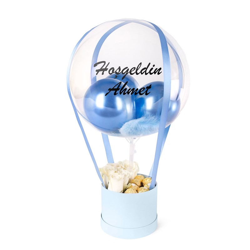 Ürün boyutu kutu ölçüleri 15x15 cm, yükseklik 60 cm’dir. Kişiye özel balon kutularımız isteğe göre sizlerin istediği şekilde yazı yazılmaktadır. Ürün içeriğinde 5 Adet İthal gül, 7 adet rocher çikolata bulunur.
