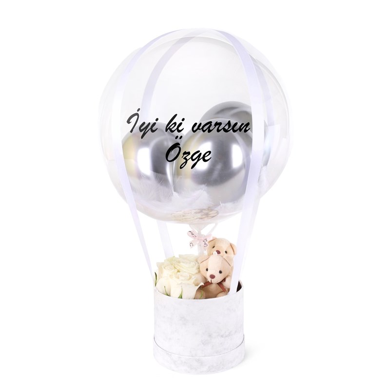 Beyaz Güllü ve Ayıcıklı Mermer Desenli Balon Kutusu - 1