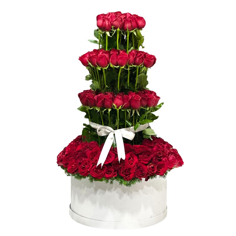 İstanbul Çiçekleri’nin göz alıcı tasarımıyla hazırlanan bu özel aranjmanda, ihtişam ve romantizm bir arada sunuluyor. 220–250 adet kırmızı gül ile oluşturulan bu katlı merdiven düzen, sevginin gücünü ve etkileyiciliğini en üst seviyede yansıtır. Beyaz silindir kutuda, kat kat yükselen gül formu sayesinde hem şık hem de gösterişli bir sunum sağlar. Bu etkileyici tasarım; özellikle yıldönümü, evlilik teklifi, doğum günü ya da özel kutlamalar için unutulmaz bir hediye alternatifi sunar. Ürün Boyutu: Yaklaşık 90–110 cm İstanbul Çiçekleri farkıyla, aynı gün teslimat ve tazelik garantisiyle sevdiklerinize duygularınızı en görkemli haliyle iletin.