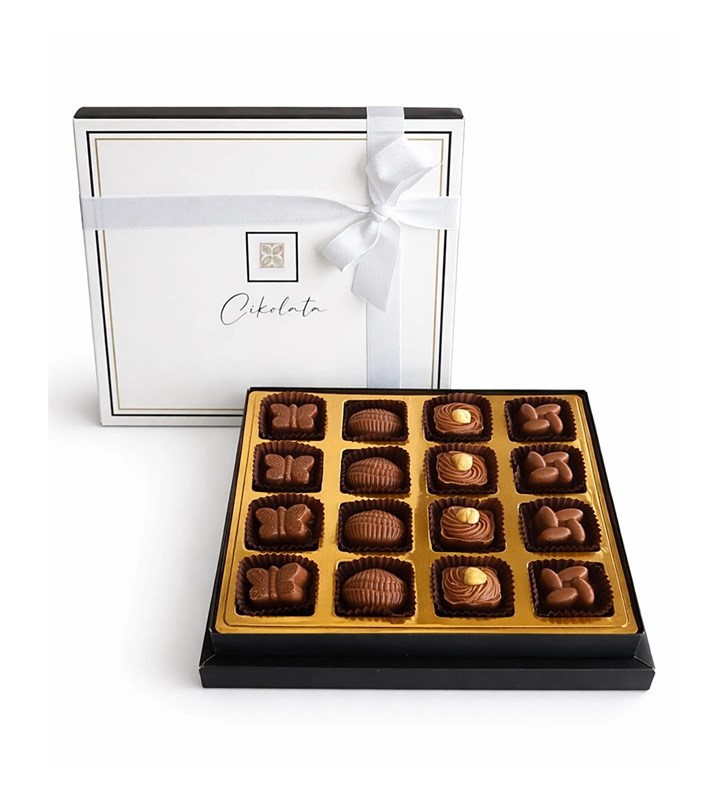 Ürünümüzde 16 adet karışık spesiyal çikolata bulunmaktadır. Kutu Ölçümüz 23,5x22,5x5 cm'dir. Ürünlerimizde alkol veya domuzyağı gibi maddeler kesinlikle bulunmamaktadır. Stok durumuna göre çikolata çeşitleri farklılık gösterebilir. Alerjen Uyarısı : süt tozu içerir,eser miktarda fıdık,atep fıstığı,badem,yer fıstığı,susam,ceviz ve gluten içerebilir. Muhafaza Şartları: Serin ve kuru yerde (+18/22 C'de ) muhafaza ediniz. Güneş ışığına doğrudan temasta bırakmayınız . Buzdolabına koymayınız.