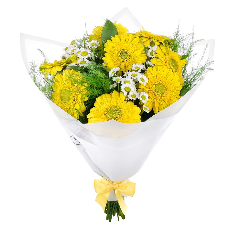 Ürünün boyutu ortalama 35 - 40 cm arasındadır. Sarı Gerbera ve Beyaz Papatya Buketi, zarif ve enerjik renklerin birleşimiyle özel bir anlam taşır. Sarı gerbera, neşe, mutluluk ve enerjiyi simgelerken, beyaz papatya saflığı, masumiyeti ve içtenliği ifade eder. Bu kombinasyon, hem görsel olarak göz alıcı hem de duygusal açıdan derin bir etki bırakır. Buketlerin bakımında püf noktalar; * 2 günde bir suyunun değişmesi gerekir. * Her su değişiminde bitkinin alttan kökleri 1 cm kadar kesilmelidir. * Çiçeklerin suyunun devamlı berrak olmasına dikkat edilmesi tavsiye edilir.