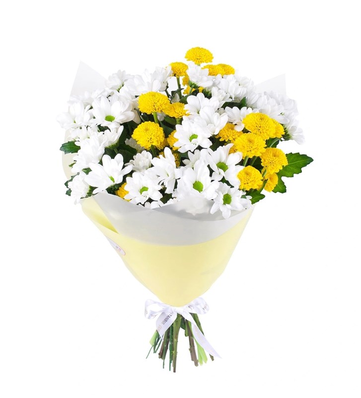 Ürünün boyutu 25-30 cm aralığındadır. Beyaz ve sarı papatya buketi, sadeliği ve zarafetiyle dikkat çeker. Papatyalar, doğanın saflığını simgelerken, beyaz renkleri genellikle saflığı, temizliği ve masumiyeti temsil eder. Sarı papatyalar ise mutluluğun, enerjinin ve dostluğun simgesidir. Bu iki rengin bir araya gelmesi, hem neşeli hem de huzur verici bir etki yaratır. Buketlerin bakımında püf noktalar; * 2 günde bir suyunun değişmesi gerekir. * Her su değişiminde bitkinin alttan kökleri 1 cm kadar kesilmelidir. * Çiçeklerin suyunun devamlı berrak olmasına dikkat edilmesi tavsiye edilir.