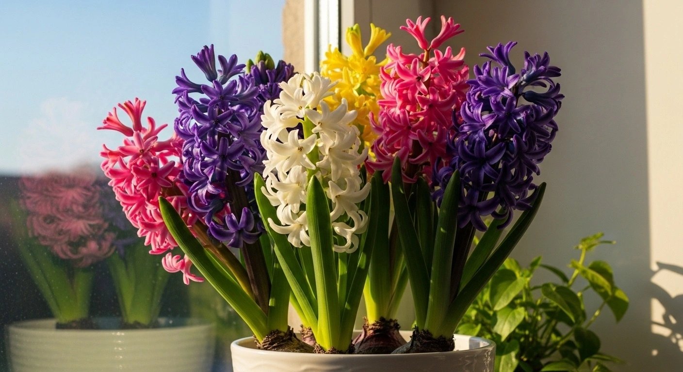 Saksı, gün ışığını dolaylı alan bir konumda tutulmalıdır. Saksıda yetiştirilen sümbüller genellikle bahçedekilere göre daha kontrollü büyür. Bu da çiçeğin formunu korumasına yardımcı olur. Düzenli bakım yapıldığında saksı sümbülleri uzun süre canlı kalır ve tekrar çiçeklenebilir.