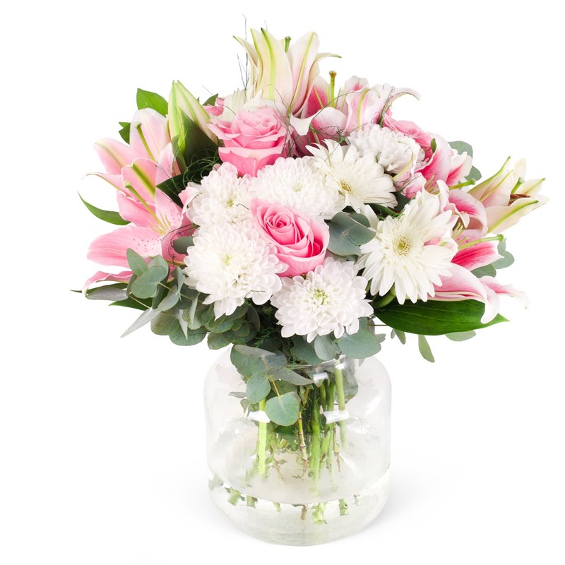 Özenle seçilmiş pembe zambak, pembe güller ve canlı gerberalarla hazırlanan bu özel mix aranjman, şık damacana cam vazoda sunulur. Ortalama 40-50 cm boyutundaki bu zarif tasarım, evinizde, ofisinizde ya da özel günlerinizde estetik ve neşeli bir atmosfer yaratır. Pembe tonlarının romantik ve sıcak etkisi, sevgi ve mutluluğun simgesi olarak sevdiklerinize en özel hediyeyi sunmanızı sağlar. Uzun ömürlü ve taze çiçekler, düzenli bakım ile haftalarca tazeliğini korur. Aranjmanı aydınlık ve doğrudan güneş almayan bir ortamda muhafaza edin. Vazodaki suyu her 2-3 günde bir tazeleyerek çiçeklerin tazeliğini koruyun. Solan yaprak ve çiçekleri düzenli olarak temizlemek, aranjmanın ömrünü uzatır. İstanbul Çiçekleri kalitesiyle hazırlanan bu özel tasarım, taze çiçeklerle elde edilir ve sipariş üzerine özenle hazırlanarak size ulaşır.