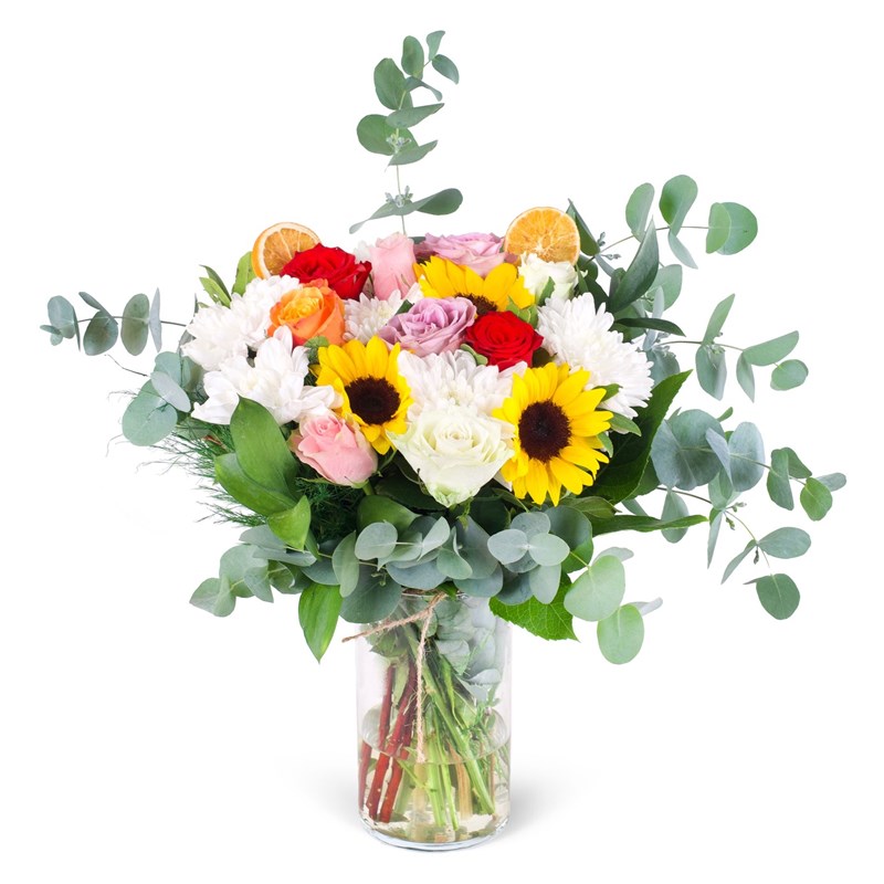 Göz alıcı renklerin uyum içinde buluştuğu, her biri özenle seçilmiş taptaze çiçeklerin zarif bir cam vazoda sunulduğu Cam Vazoda Renkli Premium Çiçekler, sevdiklerinize unutulmaz bir hediye sunmanın en özel yollarından biridir. Her bakışta neşe, enerji ve canlılık uyandıran bu aranjman; evlerde, ofislerde ve özel günlerde bulunduğu ortamın havasını değiştirir.