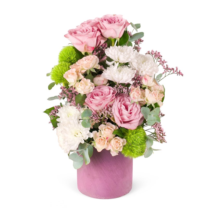 Romantik dokunuşları ve sofistike renk uyumuyla dikkat çeken bu aranjman, lila gül, beyaz kasımpatı çiçekleriyle zarif birleşimini seramik saksıda buluşturuyor. Bu aranjman canlı ve doğal görünümüyle her ortamda fark yaratır. İstanbul Çiçekleri güvencesiyle, özel günlerinize anlam katan eşsiz bir hediye seçeneği. Aynı gün teslimat fırsatıyla, sevginizi ve şıklığı en hızlı şekilde kapınıza ulaştırıyoruz!