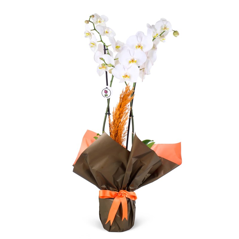 Çift Dal Beyaz Orkide Aranjmanı