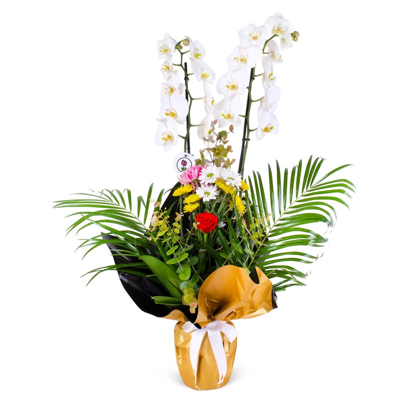 Çift Dal Beyaz Orkide Fenix Aranjmanı