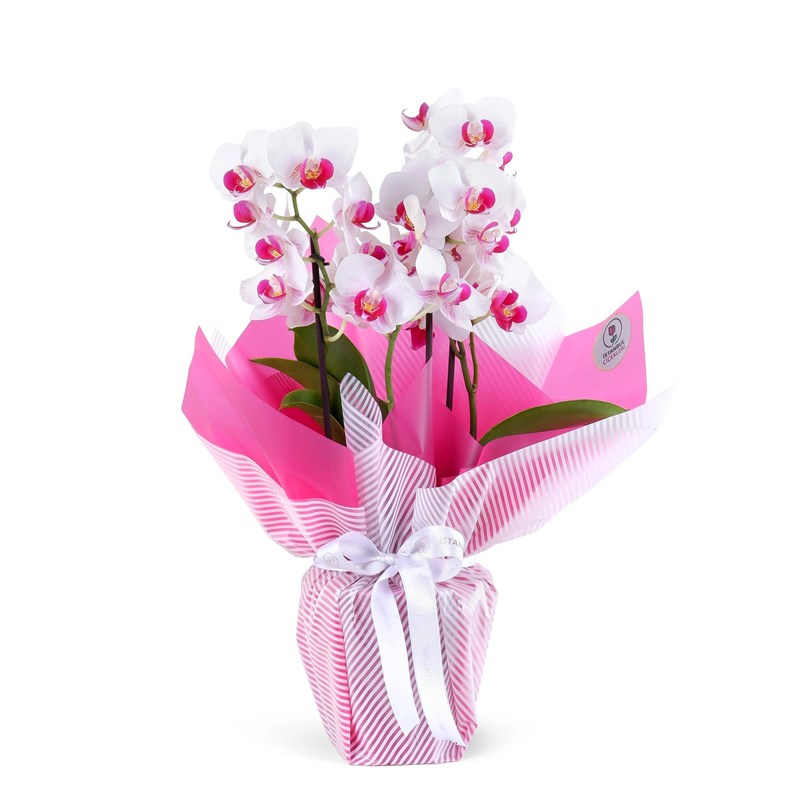 Fuşya Beyaz Orkide Aranjmanı , çift dallı yapısı ve 30-35 cm boyuyla kompakt ama etkileyici bir duruş sergiler. Evinize ya da sevdiklerinizin yaşam alanlarına sofistike bir dokunuş katar. İki dallı yapısıyla hem gösterişli hem de dengeli bir duruş sergiler. Orkidenizin sağlıklı gelişimi için direkt güneş ışığından uzak, aydınlık bir ortam tercih edin; sulamayı ise haftada 1 kez, toprağın nem durumuna göre yapmanız yeterli olacaktır. İstanbul içi verdiğiniz siparişlerde aynı gün teslimat hizmetimizle, sevdiklerinize zamanında ve taze çiçekler ulaştırmanın mutluluğunu yaşıyoruz. Hızlı Teslimatlı Orkide