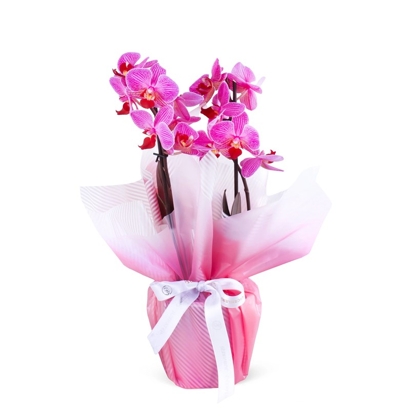 Kırçıllı Pembe Orkide Aranjmanı, çift dallı yapısı ve 30-35 cm boyuyla kompakt ama etkileyici bir duruş sergiler. Evinize ya da sevdiklerinizin yaşam alanlarına sofistike bir dokunuş katar. İki dallı yapısıyla hem gösterişli hem de dengeli bir duruş sergiler. Orkidenizin sağlıklı gelişimi için direkt güneş ışığından uzak, aydınlık bir ortam tercih edin; sulamayı ise haftada 1 kez, toprağın nem durumuna göre yapmanız yeterli olacaktır. İstanbul içi verdiğiniz siparişlerde aynı gün teslimat hizmetimizle, sevdiklerinize zamanında ve taze çiçekler ulaştırmanın mutluluğunu yaşıyoruz. Hızlı Teslimatlı Orkide