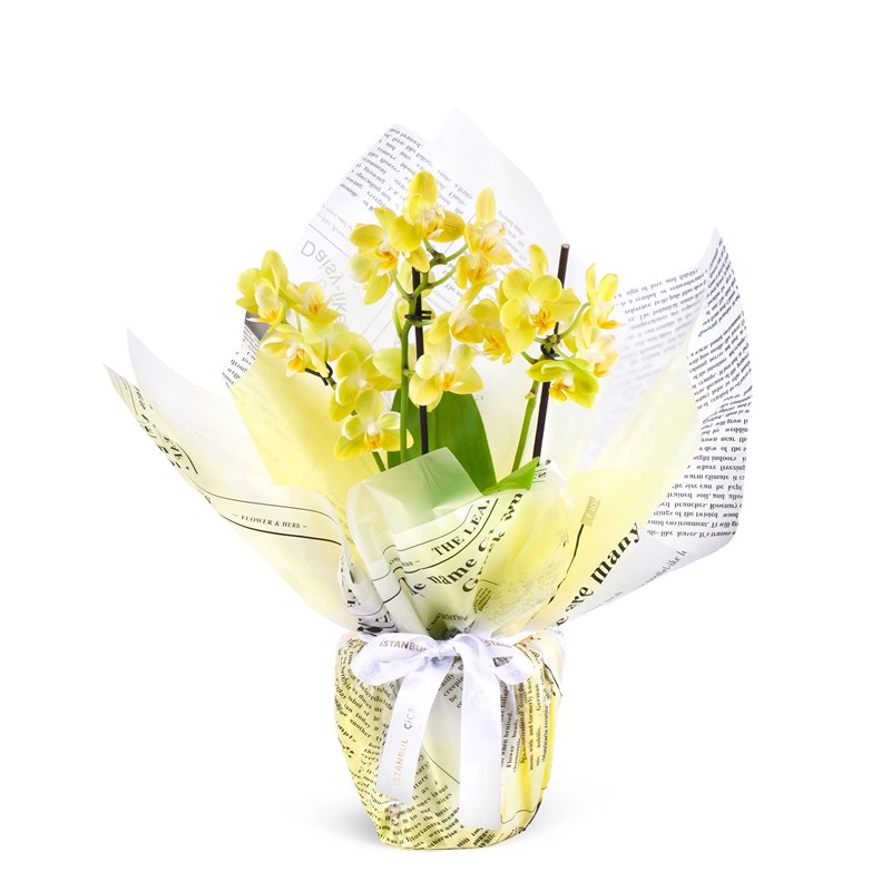 Sarı Orkide Aranjmanı, çift dallı yapısı ve 30-35 cm boyuyla kompakt ama etkileyici bir duruş sergiler. Evinize ya da sevdiklerinizin yaşam alanlarına sofistike bir dokunuş katar. İki dallı yapısıyla hem gösterişli hem de dengeli bir duruş sergiler. Orkidenizin sağlıklı gelişimi için direkt güneş ışığından uzak, aydınlık bir ortam tercih edin; sulamayı ise haftada 1 kez, toprağın nem durumuna göre yapmanız yeterli olacaktır. İstanbul içi verdiğiniz siparişlerde aynı gün teslimat hizmetimizle, sevdiklerinize zamanında ve taze çiçekler ulaştırmanın mutluluğunu yaşıyoruz. Hızlı Teslimatlı Orkide