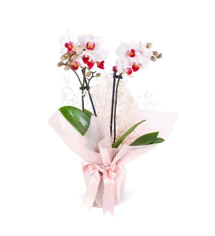 Ürünün boyutu 35-40 cm aralığındadır. Dalmaçya Orkide Aranjmanı Midi - 2 Dal, zarif ve sofistike bir dekorasyon seçeneğidir. İki dalda açan Dalmaçya orkidesi, beyazın saflığı ve morun derin tonlarını birleştirerek mekânınıza zarif bir dokunuş katar. Orkidenin her çiçeği, ince yapısı ve göz alıcı deseniyle dikkat çeker. Bu aranjman, doğanın güzelliklerini sade bir şıklıkla sunar. Dalmaçya Orkide Aranjmanı Midi - 2 Dal, her ortamda etkileyici bir odak noktası oluşturur. Oturma odası, yemek masası, çalışma alanı veya ofis gibi mekanlarda şıklık ve zarafet sağlar. Ayrıca, yıl dönümü, doğum günü, kutlama veya teşekkür hediyesi gibi özel günlerde anlamlı ve şık bir hediye alternatifi olarak tercih edilebilir. Bakımı: Işık: Orkide, doğrudan güneş ışığından kaçınarak parlak, dolaylı ışık alan bir yerde büyür. Güneş ışığına doğrudan maruz kalmak, yaprakların yanmasına ve çiçeklerin solmasına neden olabilir. Sıcaklık: Aşırı soğuk ya da aşırı sıcak hava, orkidenin sağlıklı gelişimini engelleyebilir. Odanın nem seviyesini de göz önünde bulundurmak gerekir. Sulama: Orkide bitkisini sularken dikkatli olunmalıdır. Orkide, fazla suyu sevmez, bu nedenle toprağın üst kısmı kuruduğunda sulama yapılmalıdır. Sulama sırasında suyun saksının tabanında birikmemesine özen gösterin. Saksı altındaki delikler, suyun hızlı bir şekilde tahliye olmasını sağlamalıdır. Nem: Orkide nemli ortamlardan hoşlanır. Nem oranı düşük ortamlarda orkidenin yaprakları kuru ve solgun görünebilir.