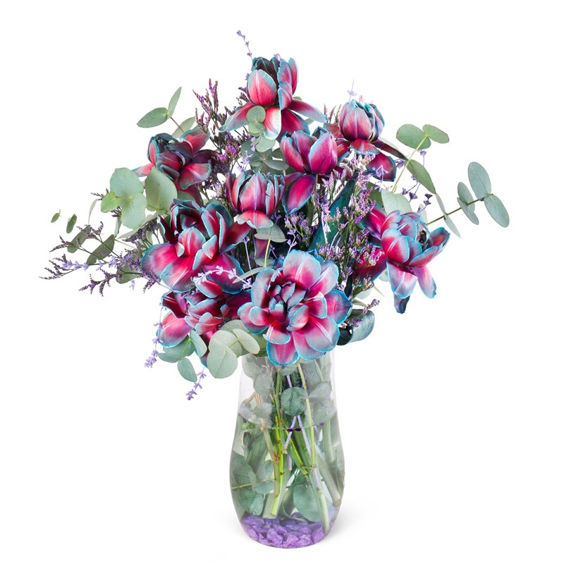 Damla Vazoda Galaksi Lale Aranjmanı, zarif ve şık bir tasarım arayanlar için ideal bir seçimdir. Bu aranjman, galaksi lale çiçeklerinin büyüleyici güzelliği ve şıklığıyla öne çıkarken, damla vazonun modern ve zarif yapısı ile mükemmel bir uyum oluşturur. Hem görsel açıdan etkileyici hem de duygusal anlam taşıyan bu aranjman, özel bir hediye ya da dekorasyon unsuru olarak tercih edilebilir. Galaxy Tulips türü, adını galaksiye benzer dalgalı desenlerinden alır ve kendine has bir görünüm sunar. Genellikle mor, beyaz, pembe ve bazen mavi tonlarının karışımı olan bu laleler, çevresine zarif bir ışıltı katarak her bakışta farklı bir etki yaratır. Galaksi Lale, zarif formu ve nadir bulunmasıyla bilinir, bu da onu çok özel kılar. Çiçeğin dokusu yumuşak ve dayanıklıdır, bu nedenle görsel şıklığının yanı sıra uzun süre taze kalır. Damla Vazoda Galaksi Lale Aranjmanı, hem görsel olarak hem de sembolik anlamı açısından güçlü bir etkisi vardır. Tulips, tarih boyunca aşk, güzellik ve zarafetle ilişkilendirilmiştir. Özellikle galaksi lale, özel ve eşsiz bir anlam taşır, çünkü nadir bulunması ve benzersiz desenleriyle her zaman dikkat çeker. Bu aranjman, galaksi lale çiçeklerinin büyüleyici renk tonlarıyla dikkat çeker ve damla vazoda mükemmel bir uyum oluşturur. Aranjmanın tasarımında çiçeklerin simetrik yerleşimi, her bir çiçeğin görünürlüğünü artırır. Lale, aşk, güzellik ve zarafetle ilişkilendirilen bir çiçektir. Galaksi lale, nadirliği ve eşsiz yapısıyla daha derin bir anlam taşır, bu nedenle özel kutlamalar, yıl dönümleri, doğum günleri veya romantik anlar için mükemmel bir hediye olabilir.