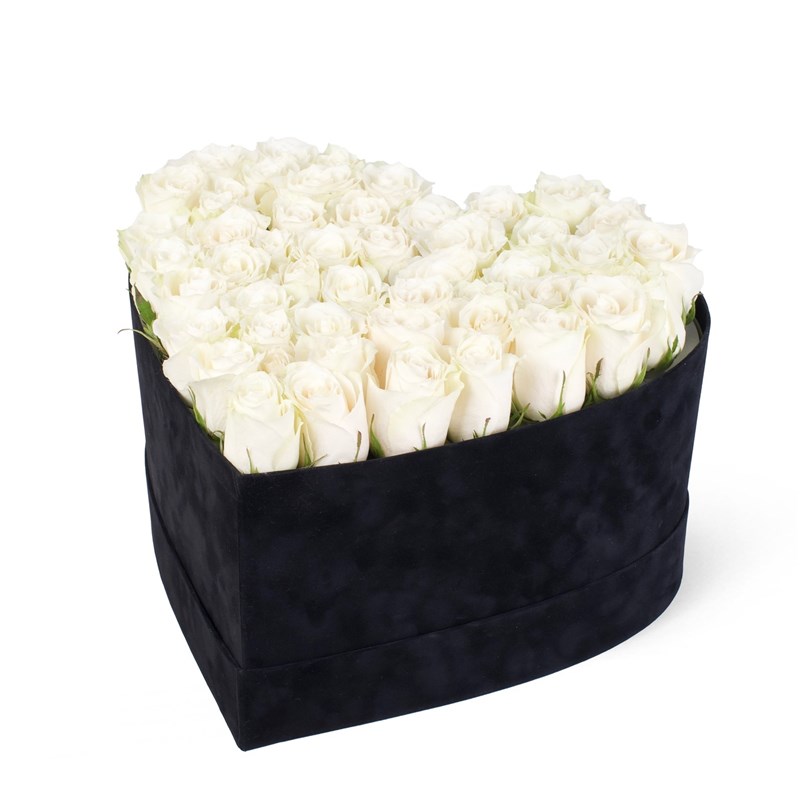 Süet kutudur. 37cm çapında, 20 cm yüksekliktedir. 45-50 adet ithal beyaz gül bulunmaktadır. Gül rengi mevsim koşullarına göre değişiklik gösterebilir. Kapağı mevcuttur. İstanbul içi özel kuryeler ile aynı gün teslimat , istanbul dışı yurt içi kargo ile gönderim sağlanmaktadır. Sevdiğinize sevginizi göstermenin en tatlı hali.