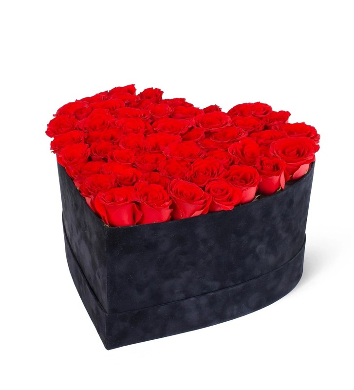 Süet kutudur. 37cm çapında, 20 cm yüksekliktedir. 45-50 adet ithal kırmızı gül bulunmaktadır. Gül rengi mevsim koşullarına göre değişiklik gösterebilir. Kapağı mevcuttur. İstanbul içi özel kuryeler ile aynı gün teslimat , istanbul dışı yurt içi kargo ile gönderim sağlanmaktadır. Sevdiğinize sevginizi göstermenin en tatlı hali.