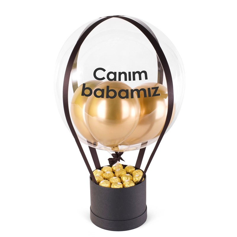 Siyah ve altın renklerin şıklığını bir araya getiren bu kutu, içindeki çikolatalar ve kişiselleştirilmiş balon mesajıyla babanıza unutulmaz bir sürpriz sunar. Özel günleri unutulmaz kılmak için tasarlanmış kişiye özel balon kutularımızla sevdiklerinize anlam dolu bir sürpriz yapın. Balon üzerine dilediğiniz mesaj yazılır; tamamen sizin isteğinize göre hazırlanır. Ürün Boyutu: Kutu Ölçüleri: 15 x 15 cm Yükseklik: 60 cm