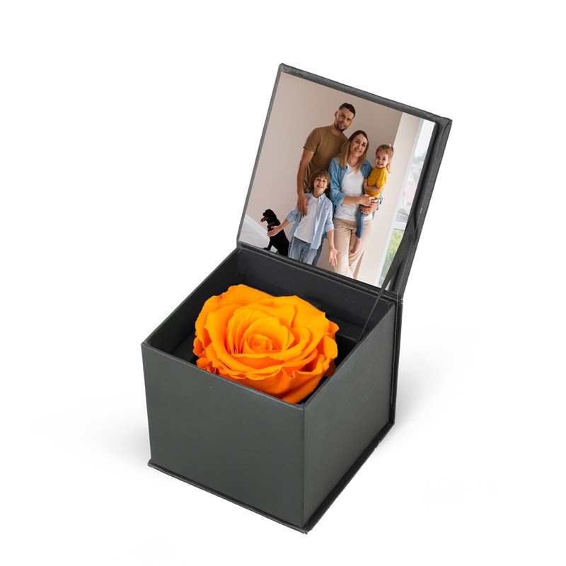 Fotoğraflı Kapaklı Kutuda Turuncu Solmayan Gül