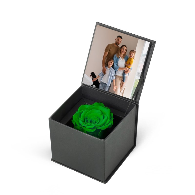 Fotoğraflı Kapaklı Kutuda Yeşil Solmayan Gül - 1