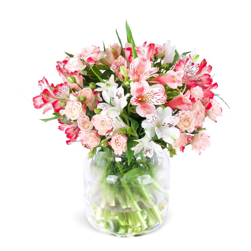 Ürünün boyutu ortalama 35 - 40 cm arasındadır. Fresh Power Alstroemeria, pembe çardak güller, beyaz, pembe ve koyu pembe alstroemeria çiçekleri ile oluşturulmuş canlı ve göz alıcı bir çiçek aranjmanıdır. Bu buket, renklerin uyumu ve çiçeklerin zarafeti ile dikkat çekerken, aynı zamanda pozitif enerji ve neşe yayar. Renkli alstroemeria çiçekleri, aranjmana dinamik bir hava katar. Pembe çardak güller, neşe ve canlılık simgeler. Bu çiçekler, aranjmana sıcaklık ve samimiyet katar. Pembe tonları, genellikle dostluk ve sevgi duygularını ifade eder. Fresh Power Alstroemeria aranjmanı, hem görsel bir şölen sunar hem de derin anlamlar taşır. Bu tür bir aranjman, hem estetik hem de duygusal bir değer taşır ve özel anlarınızı daha anlamlı kılar. Sevdiklerinize, kendinize neşe ve mutluluk dolu bir hediye vermek için mükemmel bir tercihtir. Cam Aranjman Bakımı Hakkında Bilgilendirme; -Günlük bakımı için alt dallarının 1 cm olacak şekilde kesilmesi gerekir. -Vazoda bulunan suyun berrak olması gerekir ve 2 günde bir suyunun değişmesi gerekir. -Ürünün serin yerde muhafaza edilmesi gerekir. -Solmuş veya bozulmaya başlayan ürünün yapraklarının temizlenmesi gerekir.