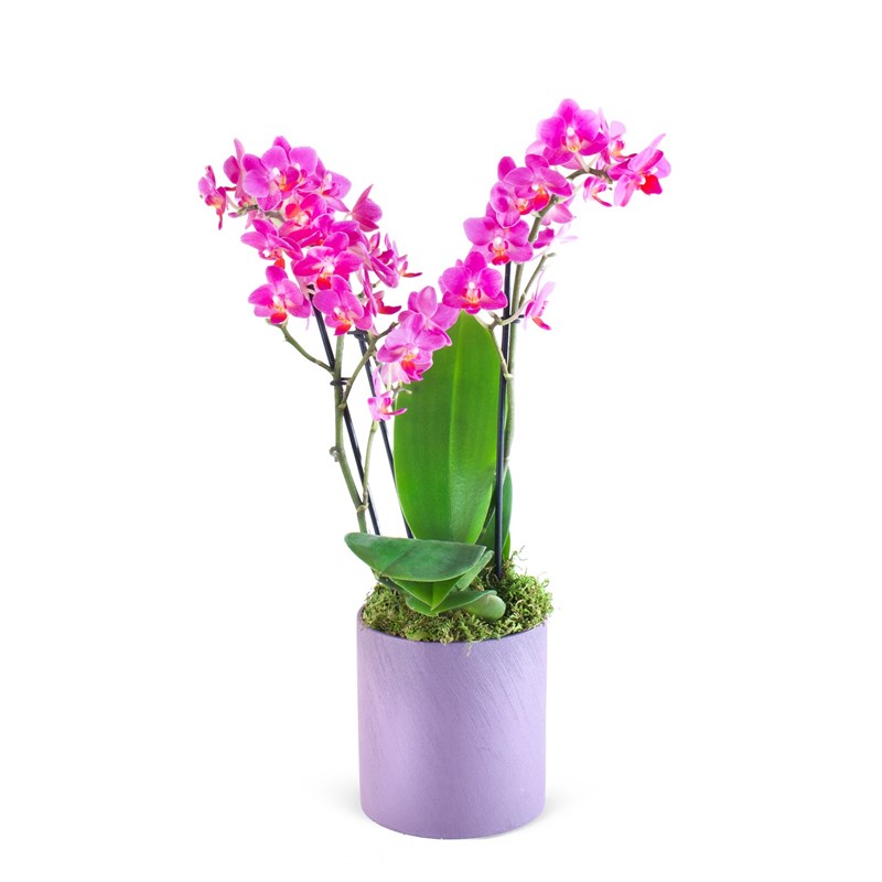 Ürünün boyutu 40-45 cm aralığındadır. Fuşya Pembe Multi Midi Orkide Aranjmanı Blushing Pink, canlı rengi ve zarif duruşuyla duygularınızı en güzel şekilde ifade etmenin doğal bir yoludur. Fuşya tonlarındaki bu multi midi orkide, estetik güzelliğiyle yaşam alanlarınıza enerji ve şıklık katar. Zarif dallarında birden fazla çiçek bulunduran bu orkide, her ortamda göz alıcı bir dekoratif unsur olarak öne çıkar. Bakımı: Işık: Orkide, doğrudan güneş ışığından kaçınarak parlak, dolaylı ışık alan bir yerde büyür. Güneş ışığına doğrudan maruz kalmak, yaprakların yanmasına ve çiçeklerin solmasına neden olabilir. İdeal olarak, orkideyi güney veya batı cepheye bakan bir pencerede bulundurmak uygundur. Sıcaklık:Aşırı soğuk ya da aşırı sıcak hava, orkidenin sağlıklı gelişimini engelleyebilir. Odanın nem seviyesini de göz önünde bulundurmak gerekir. Sulama: Orkide bitkisini sularken dikkatli olunmalıdır. Orkide, fazla suyu sevmez, bu nedenle toprağın üst kısmı kuruduğunda sulama yapılmalıdır. Sulama sırasında suyun saksının tabanında birikmemesine özen gösterin. Saksı altındaki delikler, suyun hızlı bir şekilde tahliye olmasını sağlamalıdır. Nem: Orkide nemli ortamlardan hoşlanır. Nem oranı düşük ortamlarda orkidenin yaprakları kuru ve solgun görünebilir.