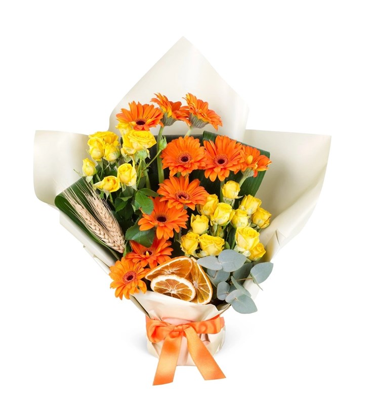 İstanbul Çiçekleri tasarım ekibi tarafından özenle hazırlanmış olan bu aranjman, hem göz alıcı hem de anlam yüklü bir hediyedir. Yaklaşık 30-35 cm boyutundaki bu şık aranjman, parlak ve içten tonlarıyla dikkat çeken turuncu gerberalar; neşe, canlılık ve samimiyetin simgesidir. Yanında yer alan sarı çardak güller ise dostluk, mutluluk ve içten sevgiyi temsil eder. Canlı ambalajı ve zarif kurdelesiyle tamamlanan bu aranjman, ister özel günlerde ister küçük ama anlamlı bir sürpriz yapmak istediğinizde mükemmel bir tercih olur. Tazeliğiyle yaşam alanlarına neşe katan bu aranjman, hem göze hem ruha hitap eden doğal ve şık bir hediye alternatifi sunar.