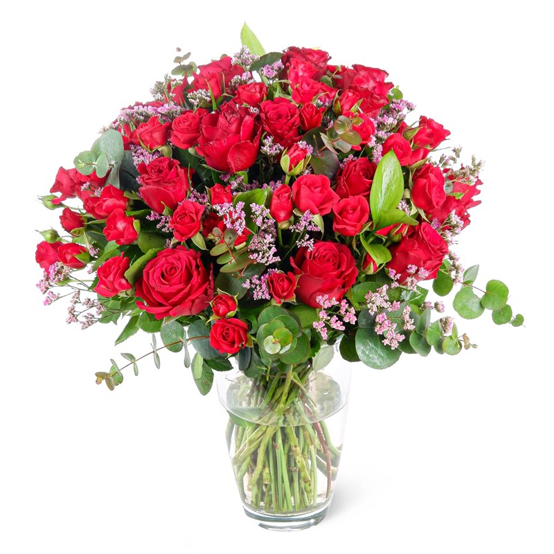 Ürünün boyutu ortalama 35 -40 cm arasındadır. Huge Red Love, kırmızı güller, kırmızı çardaklar ve okaliptus ile oluşturulmuş etkileyici ve göz alıcı bir çiçek aranjmanıdır. Bu buket, tutku ve sevgi dolu bir atmosfer yaratırken, aynı zamanda zarif bir görünüm sunar. Kırmızı güller, aşkın ve tutkunun en güçlü sembollerinden biridir. Bu çiçekler, derin duyguları ifade etmek için mükemmel bir seçimdir. Kırmızı güllerin zarif yapısı ve hoş kokusu, aranjmana özel bir hava katar. Cam Aranjman Bakımı Hakkında Bilgilendirme; -Günlük bakımı için alt dallarının 1 cm olacak şekilde kesilmesi gerekir. -Vazoda bulunan suyun berrak olması gerekir. -2 günde bir suyunun değişmesi gerekir. -Ürünün serin yerde muhafaza edilmesi gerekir. -Solmuş veya bozulmaya başlayan ürünün yapraklarının temizlenmesi gerekir.