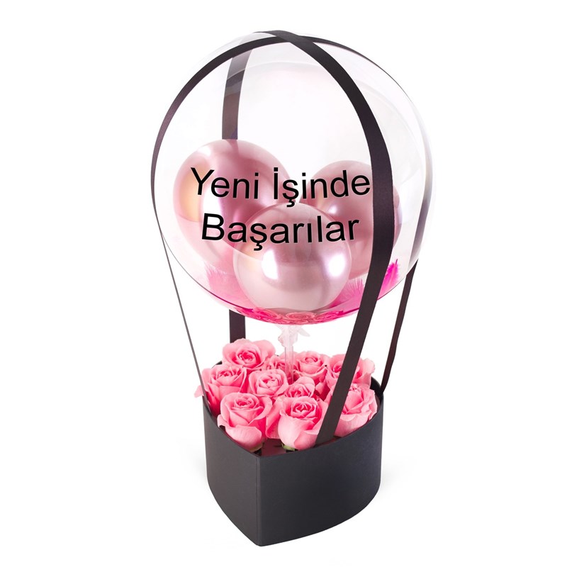 Kalp Kutuda Pembe Güllü Balon Kutusu