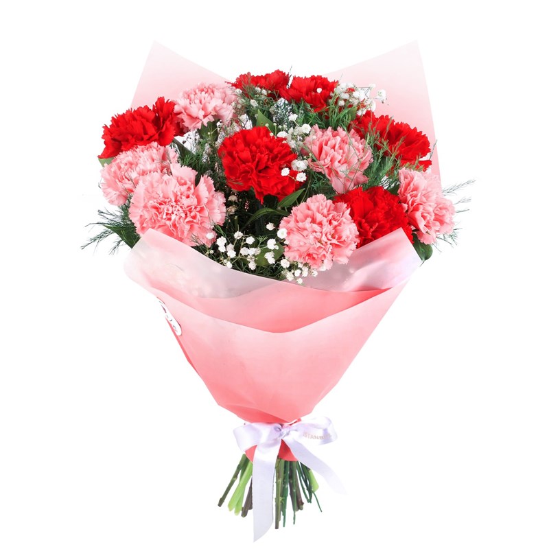 Ürün boyutu ortalama 30-35 cm aralığındadır. Karanfil Love Buketi, pembe ve kırmızı karanfillerin zarif birleşimiyle oluşturulmuş bir çiçek buketidir. Pembe ve kırmızı karanfiller, her iki rengin de anlamları birbirinden farklıdır. Pembe karanfiller, sevgi ve hayranlık anlamı taşırken, kırmızı karanfiller tutkulu aşkı simgeler. Özellikle sevgi dolu bir hediye arayanlar için ideal bir tercih olan bu buket, doğum günü, yıldönümü, sevgililer günü gibi özel günlerde hediye edilebilir. Buketlerin bakımında püf noktalar; * 2 günde bir suyunun değişmesi gerekir. * Her su değişiminde bitkinin alttan kökleri 1 cm kadar kesilmelidir. * Çiçeklerin suyunun devamlı berrak olmasına dikkat edilmesi tavsiye edilir.