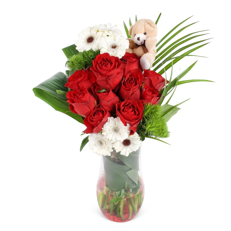Ürünün boyutu ortalama 35-40 cm arasındadır. Kırmızı Gül ve Beyaz Gerbera - Beyaz Rüya Kırmızı Aşk, romantizmi ve zarafeti simgeleyen muazzam bir çiçek aranjmanıdır. Kırmızı gül, aşk, tutku ve romantizmin klasik sembolüdür, bu nedenle Beyaz Rüya Kırmızı Aşk aranjmanı, kalpleri fethedecek ve duygusal bir etki yaratacaktır. Beyaz gerberalar ise saflığı ve zarafeti temsil eder, kırmızı güllerle birleşerek bu aranjmanı daha da özel kılar. Cam Aranjman Bakımı ; *Günlük bakımı için alt dallarının 1 cm olacak şekilde kesilmesi gerekir. *Vazoda bulunan suyun berrak olması gerekir. *Ürünün serin yerde muhafaza edilmesi gerekir. *Solmuş veya bozulmaya başlayan ürünün yapraklarının temizlenmesi gerekir.