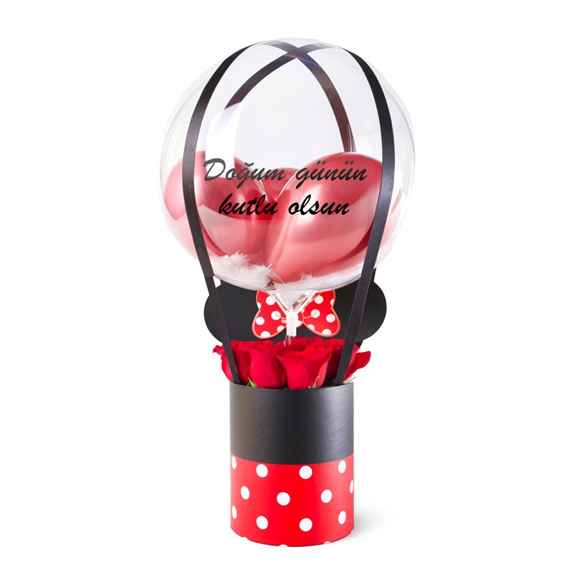 Ürün boyutu kutu ölçüleri 15x15 cm, yükseklik 60 cm’ dir. Kişiye özel balon Kutularımız isteğe göre sizlerin istediği şekilde yazı yazılmaktadır. Ürün içeriğinde 9 Adet İthal gül bulunmaktadır.