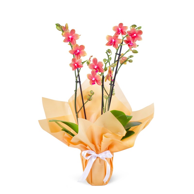 Kızıl Turuncu Orkide, saflık, zarafet ve iç huzurun simgesidir. Temiz ve sade görünümüyle bulunduğu ortama ferahlık katarken, anlam yüklü duruşuyla sevdiklerinize duyduğunuz saygı, hayranlık ve sevgiyi zarif bir şekilde ifade eder. Özellikle Sevgililer Günü’nde, klasik hediyelerin dışına çıkarak daha kalıcı ve şık bir sürpriz yapmak isteyenler için harika bir seçimdir. Bakım Bilgileri: Işık: Direkt güneş ışığından kaçının. Aydınlık ancak dolaylı ışık alan yerler idealdir. Sıcaklık: Orta derecede sabit sıcaklık tercih edilir. Aşırı sıcak ve soğuktan koruyun. Sulama: Toprağın yüzeyi kuruduğunda sulayın. Fazla sulama yaprak ve kök çürümesine neden olabilir. Nem: Nemli ortamları sever. Kuru havalarda yapraklarına su püskürtebilirsiniz.