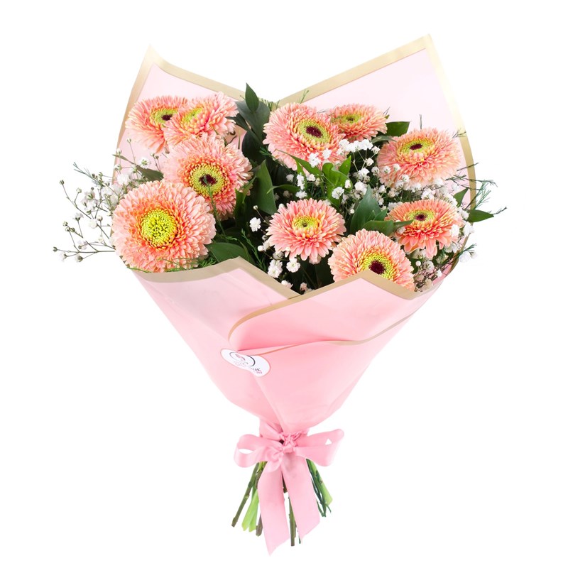 Ürünün boyutu 30-35 cm aralığındadır. Zarafetin ve sıcaklığın buluştuğu Riva Pink, pembe gerberaların yumuşak güzelliğiyle öne çıkar. Buketteki canlı pembe gerberalar, şefkatin ve tatlı duyguların simgesi olarak dikkat çekerken, kalp süsü bukete sevgi dolu bir dokunuş ekler. Riva Pink, sevgi ve inceliği ifade etmenin en güzel yollarından biridir. İster özel bir günde anlamlı bir hediye olarak, ister sıradan bir günü güzelleştirmek için tercih edin, bu buket her anı unutulmaz kılacaktır. Buketlerin bakımında püf noktalar; * 2 günde bir suyunun değişmesi gerekir. * Her su değişiminde bitkinin alttan kökleri 1 cm kadar kesilmelidir. * Çiçeklerin suyunun devamlı berrak olmasına dikkat edilmesi tavsiye edilir.