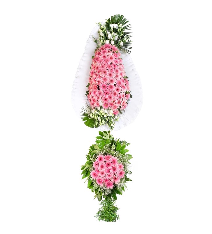 Pembe Gerbera Kutlama Çelengi Çift Kat