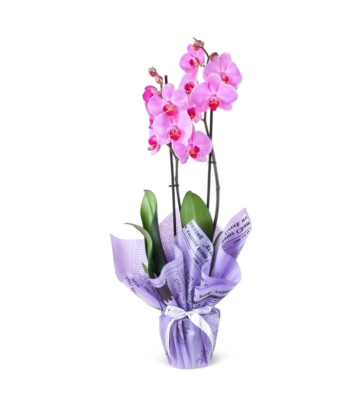 Göz alıcı pembe tonlarıyla büyüleyen bu özel orkide, zarafeti ve duygusal inceliği simgeler. Phalaenopsis türü olan iki dallı bu pembe orkide, sevgi, şefkat ve romantizmin en naif ifadesidir. Yaklaşık 55–65 cm boyutundaki bu zarif orkide, İstanbul Çiçekleri ekibinin özenli ellerinde hazırlanarak, bulunduğu ortama sade ama etkileyici bir şıklık kazandırır. Orkidenizin sağlıklı kalabilmesi için doğrudan güneş ışığı almayan, aydınlık bir alanda konumlandırın. Sulamayı haftada bir kez, köklerine doğrudan su gelecek şekilde yapın. Toprağın tamamen kurumadan sulamaktan kaçının; fazla su kök çürümelerine yol açabilir. Serin ve nemli ortamlar orkideniz için en ideal koşulları sunar. Doğru bakım ile uzun süre canlılığını ve güzelliğini korur.