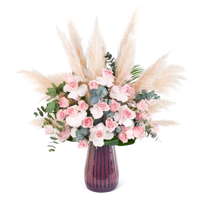 Ürün İçeriği: 35 adet gül, 10 pampas dalı ve yeşillik Çiçeklerin her biri eşsiz bir güzelliğe sahip ve her birinin güzelliği çok farklı bir görünüm sunuyor. Bu güzellikler bir araya geldiğinde ise ortaya baş döndüren, büyüleyici bir duruş çıkıyor. Sizlere en özel ve en güzel aranjmanları hazırlıyor ve büyüleyici güzelliği tanık olmanızı sağlıyoruz. Muazzam görünümü ile dikkat çeken gösterişli aranjman çeşitleri ile tüm özel günlerde sevdiklerinizi mutlu edebilirsiniz. Kalite ve dayanıklılığı ön plana tuttuğumuz için çiçeklerimizi ithal tercih ederek farklı dizayn tasarımlarımız ile estetik açıdan tamamı muhteşem bir güzellik sunuyor. Dilediğiniz tasarımı istediğiniz herhangi bir adrese kısa zamanda teslim etmemizi sağlayabiliriz. NOT: Ürünlerimiz mevsim koşullarından dolayı değişkenlik gösterebilir.