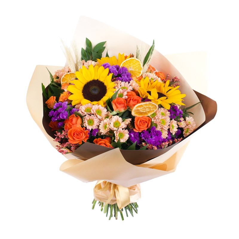 Ürünün boyutu 35-45 cm arasındadır. Pleasant Aranjmanı, zarif ve neşeli çiçeklerin birleşimiyle oluşturulmuş, enerjik ve hoş bir aranjmandır. İçeriğinde ayçiçeği, turuncu çardak gül ve statis bulunan bu buket, renkli yapısıyla dikkat çeker ve bulunduğu her mekâna canlılık katabilir. Özellikle bahar ve yaz mevsimlerinde tercih edilen bu aranjman, doğum günü, yıldönümü gibi özel günlerde hediye edebileceğiniz harika bir seçenektir. Buketlerin bakımında püf noktalar; * 2 günde bir suyunun değişmesi gerekir. * Her su değişiminde bitkinin alttan kökleri 1 cm kadar kesilmelidir. * Çiçeklerin suyunun devamlı berrak olmasına dikkat edilmesi tavsiye edilir.