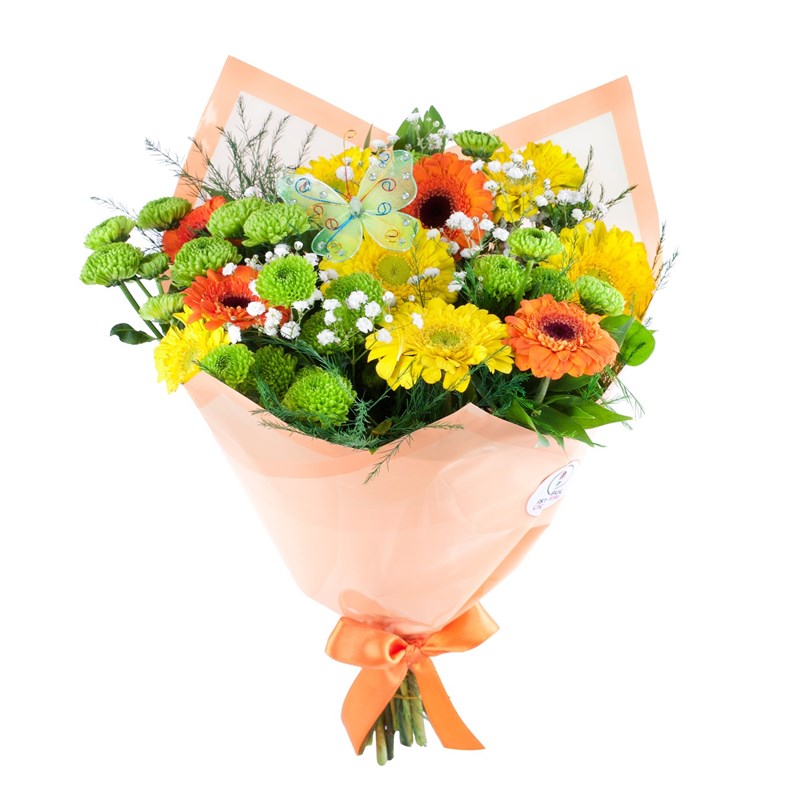 Ürünün boyutu ortalama 25-30 cm arasındadır. Sarı ve Turuncu Gerbera Buketi - Riva Yellow & Orange, canlı renklerin enerjisini ve doğanın gücünü taşıyan harika bir aranjmandır. Sarı gerbera, neşe, mutluluk ve pozitif enerjiyi simgelerken, turuncu gerbera ise sıcaklık, tutku ve cesareti yansıtır. Bu çiçeklerin birleşimi, hem görsel hem de duygusal açıdan güçlü bir etki yaratır. Buketlerin bakımında püf noktalar; * 2 günde bir suyunun değişmesi gerekir. Suyunu değiştirdiğinizde bitki besini eklenmelidir. * Her su değişiminde bitkinin alttan kökleri 1 cm kadar kesilmelidir. * Çiçeklerin suyunun devamlı berrak olmasına dikkat edilmesi tavsiye edilir.