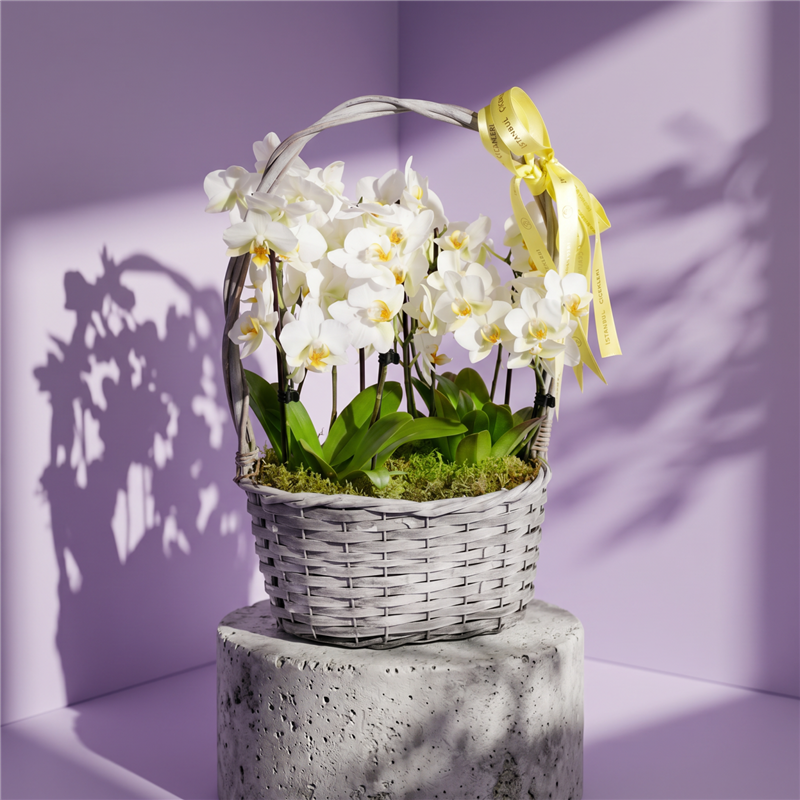 İstanbul Çiçekleri tarafından özenle hazırlanan Sepette Beyaz Orkide Bahçesi, aynı gün teslimat avantajıyla hızlı ve güvenli bir şekilde sevdiklerinize ulaştırılır.