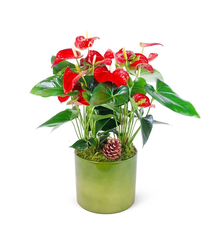 Seramik saksıda özenle hazırlanan kırmızı anthurium aranjmanı, parlak yaprakları ve canlı kırmızı çiçekleriyle bulunduğu ortama zarafet ve enerji katar. Dekoratif seramik saksısı sayesinde modern bir görünüme sahip olan bu özel aranjman, hem ev hem de ofis dekorasyonu için ideal bir seçimdir. Uzun ömürlü yapısıyla dikkat çeken anthurium, haftada 1 kez sulama ve dolaylı gün ışığında kolayca bakılabilir. Estetik görünümü ve bakımı kolay yapısıyla sevdiklerinize doğum günü, yıldönümü veya özel günlerde hediye edebileceğiniz anlamlı ve şık bir alternatiftir.
