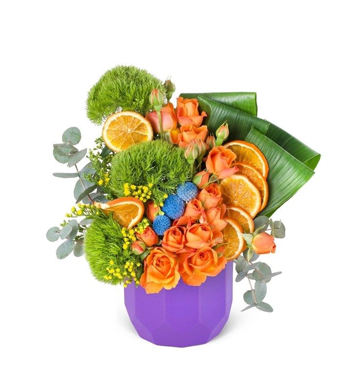 Ürünün boyutu 25-30 cm aralığındadır. Seramik Saksıda Turuncu Çardak Aranjmanı, sıcak turuncu çardak güllerinin büyüleyici renkleriyle zarif bir tasarım sunar. Turuncu çardak gülleri, canlı ve enerjik tonlarıyla hemen dikkat çeker, mekanın havasını anında canlandırır. Çiçeklerin zarif yapıları ve yuvarlak hatları, aranjmanın şıklığını pekiştirir ve her ortamda göz alıcı bir etki bırakır. Aranjmanda kullanılan seramik saksı, doğal dokusu ve şık görünümüyle çiçeklerin renklerini ön plana çıkarır. Seramiğin mat yüzeyi, turuncu çardak güllerinin canlı renkleriyle mükemmel bir kontrast yaratır, böylece aranjman daha zarif ve dikkat çekici hale gelir. Hem modern hem de doğal bir hava sunarak, her türlü iç mekan dekorasyonuna uyum sağlar. Bu aranjman, özellikle iç mekanlarda yaşam alanlarına enerji ve sıcaklık katmak için mükemmeldir. Günlük yaşamda zarif bir dekoratif öğe olarak kullanılabileceği gibi, özel günlerde hediye olarak da anlamlı bir tercih olacaktır. Hem evde hem de ofiste, bulunduğu ortama ferahlatıcı ve estetik bir dokunuş ekler. Sıcak turuncu tonları, aranjmanı samimi ve neşeli bir seçenek haline getirir, sevdiklerinize anlamlı ve göz alıcı bir hediye sunmanıza olanak tanır.
